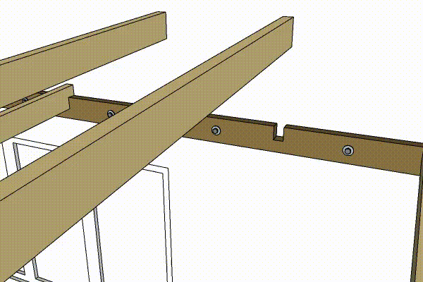 Hvert spær lægges på plads oven på remmen, og der streges op nedefra, så remmens sider er markeret på spæret.
