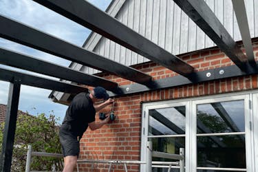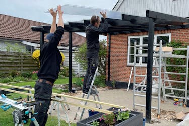 Konstruktionen er færdig, og nu kan vi endelig lægge det lækre, glasklare plasttag på.