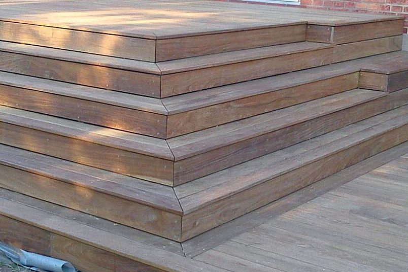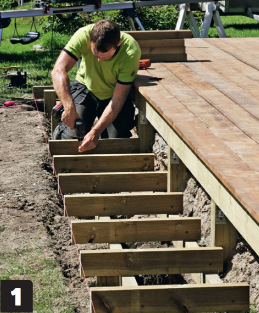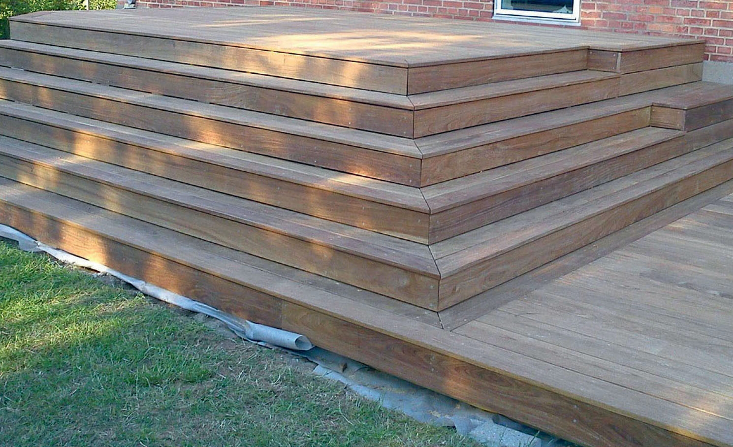 Stødtrinnet lukkes af med et terrassebræt. Trinnet kan være lidt højere end brættet, det er godt med luft.