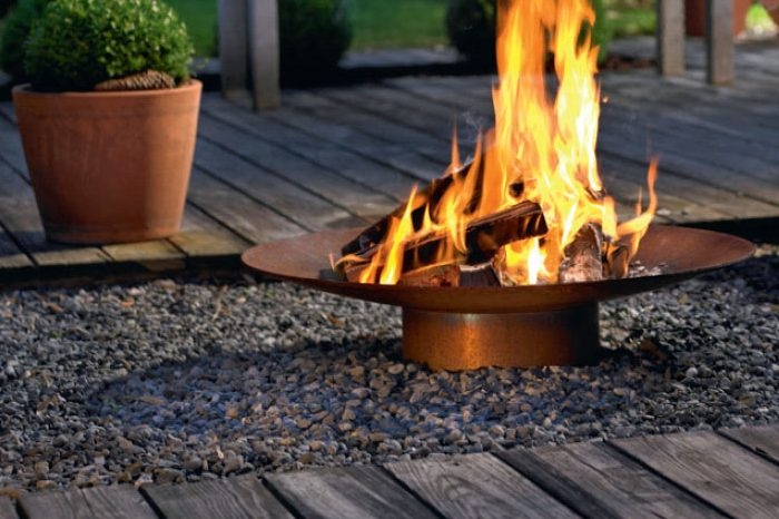 Et bålsted eller en grill hører til en terrasse. Ilden er en hyggelig del af vores liv i haven. Familien samles om grillen i de lune aftener, og når det bliver køligt, trækker bålet. Med lidt omtanke kan du sagtens gøre ilden til en vigtig side i terrassens personlighed, selv om træet let mærkes af gløder. Ildfaste materialer som sten og metal kan med flot effekt arbejdes ind i træfladen.