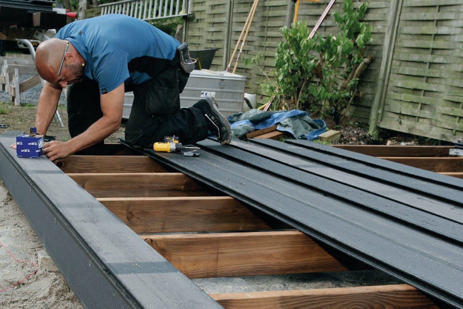 De fleste husker på, at terrassebrædderne vil arbejde i bredden, og at regnvandet skal kunne komme væk, og derfor lægger de ikke dækkets brædder tæt sammen, men holder 5-8 mm luft mellem langsiderne.