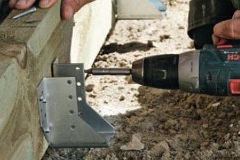 Tømrerens fine samlinger er flotte, men under terrassen er det bedre at bruge metalbeslag. Du bryder ikke trykimprægneringen mere end højst nødvendigt, og hvor en tømmersamling næsten altid danner en fugtfælde, der holder på vandet, giver beslag meget ofte lidt afstand, så det uundgåelige regnvand får mulighed for at komme væk, så træet kan tørre.