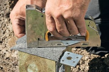 På hegnet beskytter man enderne med en “hat” eller et skråt snit. Det kan man sjældent, når stolpen helt eller delvist skal bære en strø, en rem eller en bjælke. I stedet kan du beskytte endetræet med et stykke tagpap eller fx lukke endetræet med en vandfast lim eller fugemasse.