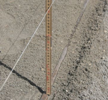 Spænd snore op til at regulere højden af gruslagene efter. Mål ned fra de hvide snore, så du får lagt et jævnt lag. Du skal have snoren af og på et par gange for at kunne komme til med vibrator mv., men det er besværet værd.