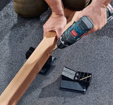 Skru først de yderste brædder fast til de løse strøer og dernæst de tre, som ligger imellem. Så er din lem færdig, og du kan fjerne afstandsbrikkerne.