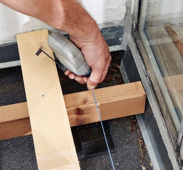 Når du saver brædderne til, skal du bruge en fintandet klinge og sørge for, at de ligger helt vinkelret på klingen.