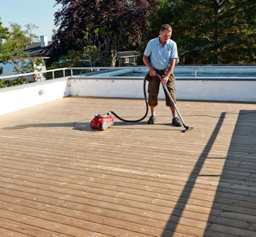 Bygger du oven på en fliseterrasse, behøver du ikke være lige så omhyggelig med rengøringen - der har du mere brug for at lægge ukrudtsdug ud, så evt. græs mellem fliserne ikke en dag dukker op mellem brædderne.