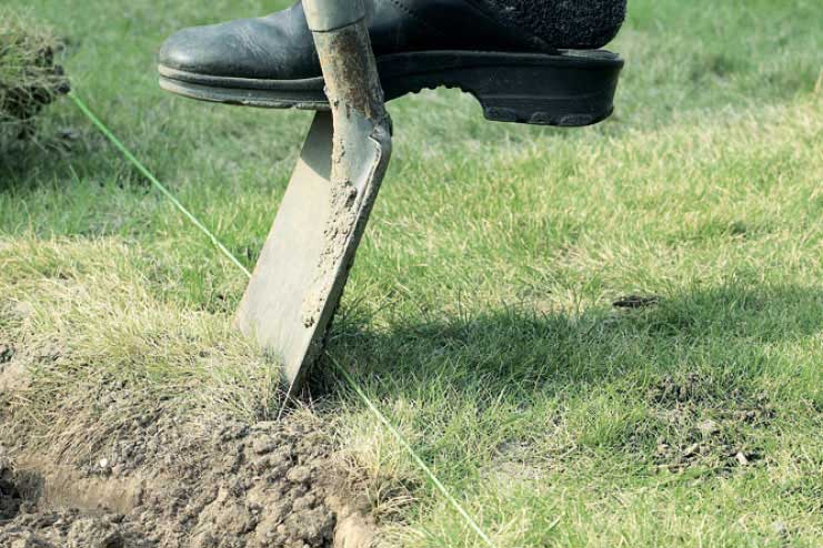 Du skal regne med at grave ned til ca. 30 cm under færdigt niveau. Dvs. al muldjorden skal graves af - helt ned til den hårde og stabile råjord. Hvis muldlaget er tykkere end den nødvendige udgravning, bliver du nødt til at fylde op med stabilgrus.