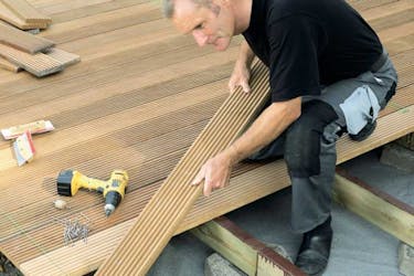 I modsætning til et indendørs trægulv skal de enkelte brædder ikke have fat i hinanden. Tværtimod skal de lægges med en lille afstand, som tillader regn-vand at løbe igennem. Og da brædderne ikke støtter hinanden i fer og not, skal de være ret kraftige - 25-28 mm. Sprækken mellem brædderne skal være 5-8 mm, så de kan udvide sig eller trække sig sammen, afhængigt af vandindhold.