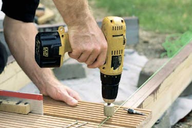 Bruger du som her hårdt træ, skal bræd-derne forbores. Anvend skruer af rustfrit stål (de indeholder ikke jern, som kan give blåsorte mærker i træet), og brug afstandsbrikker for at holde afstanden mellem brædderne.