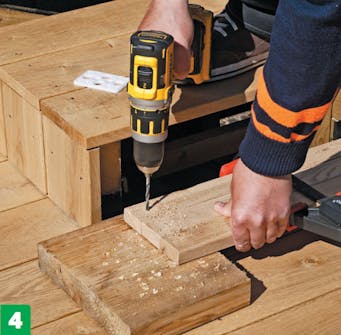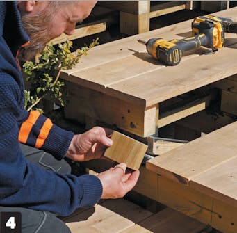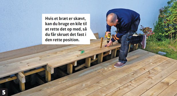 Husk at bore for i træet, inden du skruer terrassebrædderne fast.