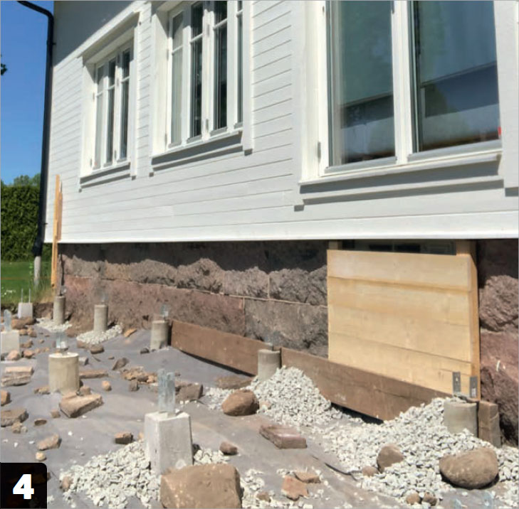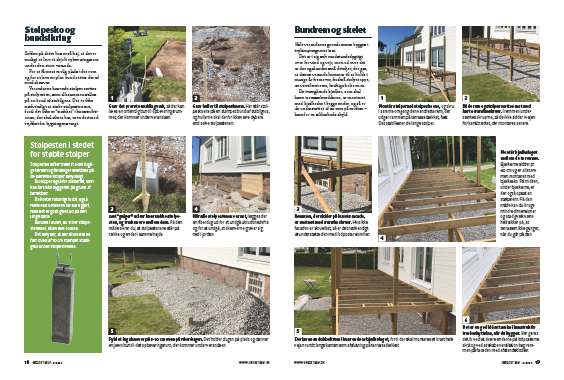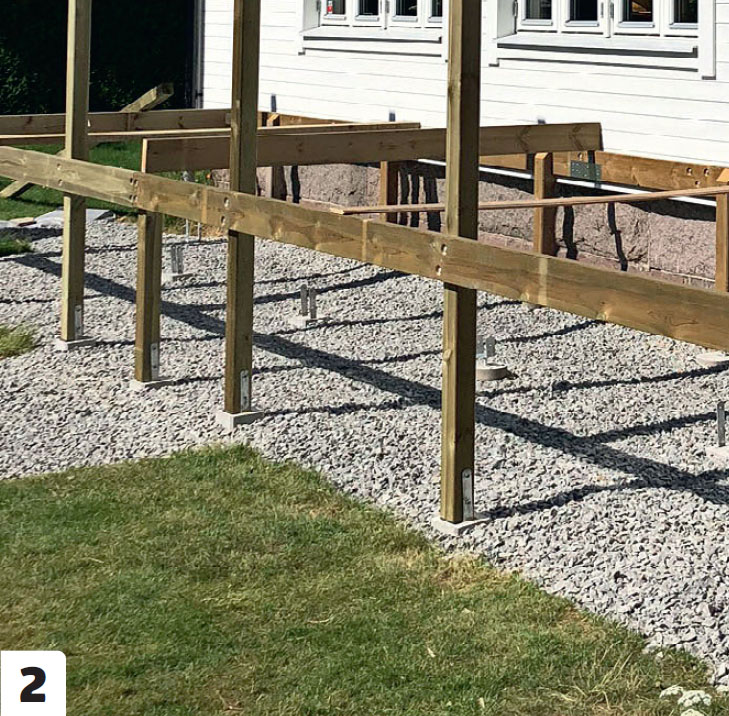 Verandaens bærende stolper sættes på stolpesten, som allesammen stilles på en bund af stabilgrus. Det er ikke nødvendigt at støbe stolpestenene, fordi det ikke er “trækket” i konstruktionen, der skal sikres her, men derimod trykket fra bygningens vægt.