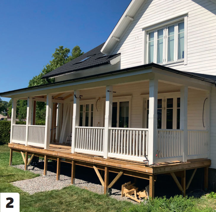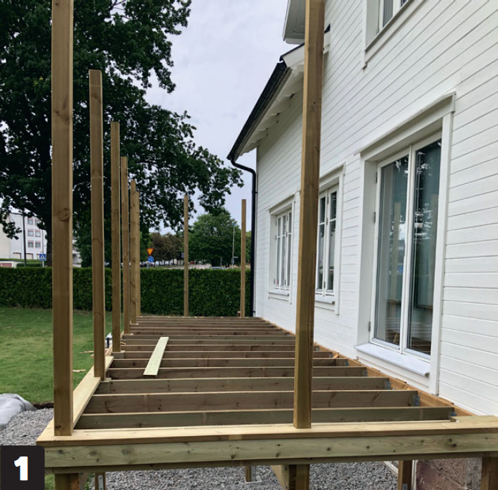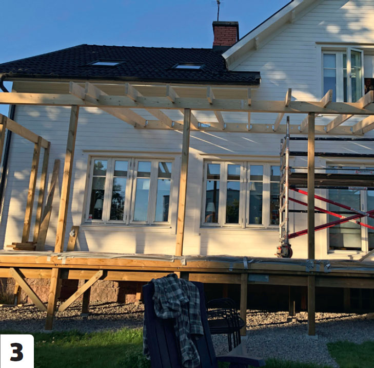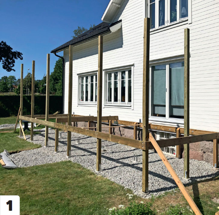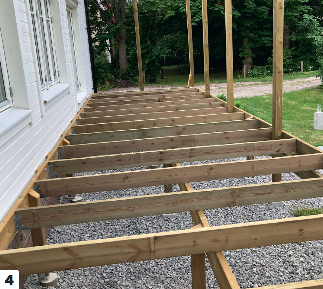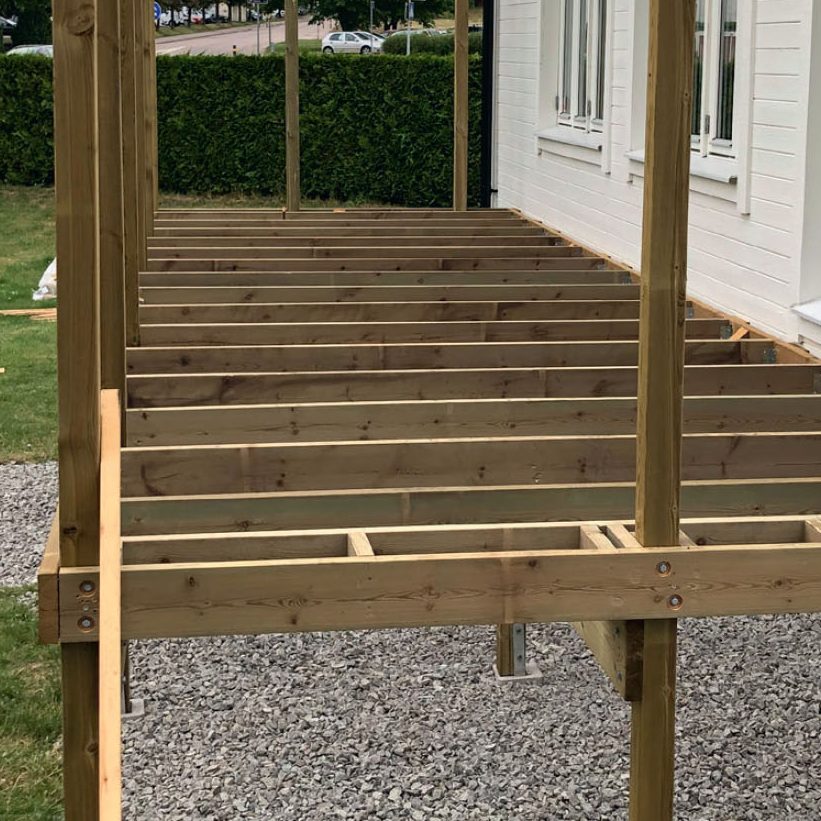Hele verandaens grundramme bygges i trykimprægneret træ.