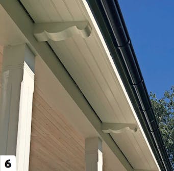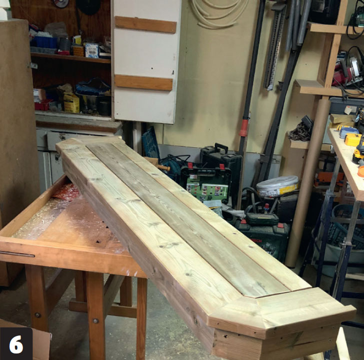 De lidt kedelige stolper bliver dækket ind i profilerede brædder, som fuldender udtrykket. Igen laves det hele på værkstedet, inden det monteres.