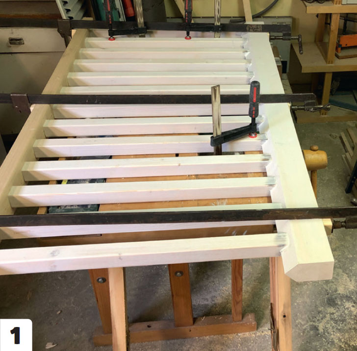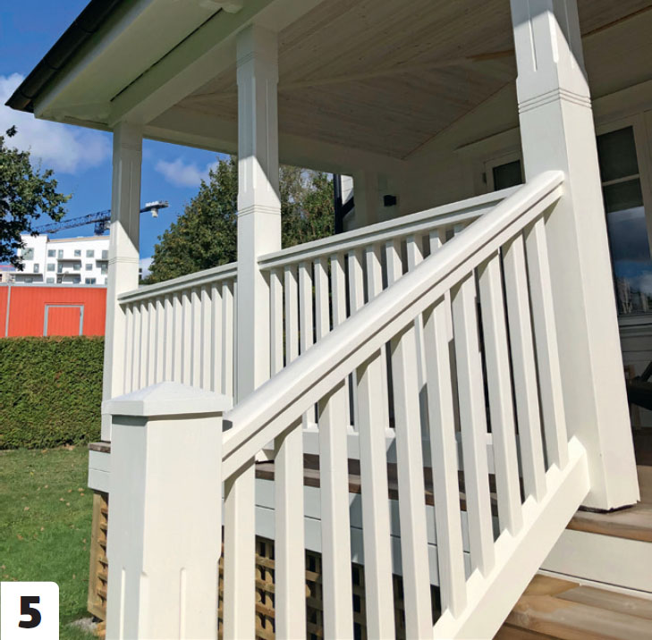 Gelænderet snedkereres og males på værkstedet, inden det monteres. Hvis du ikke har mod på det, så kan du evt. købe og tilpasse noget, der er præfabrikeret.