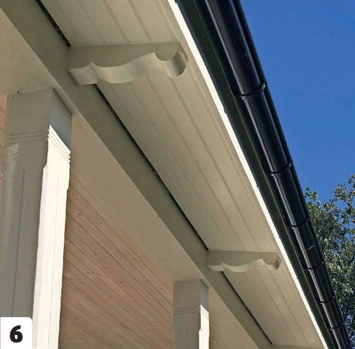 Ligesom stolperne er spærenderne dekoreret. Udskæringerne laves ved hjælp af en skabelon med det ønskede mønster og en stiksav med en ekstra lang klinge.