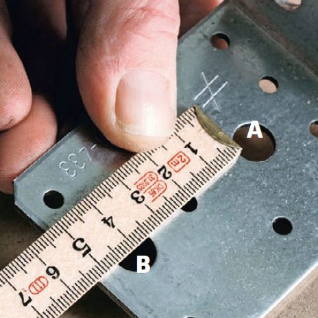 Når du skal bore huller til ophængsbeslag, skal afstanden mellem hullerne være 100 % nøjagtig. Så i stedet for at sjusse dig frem til midten kan du med fordel måle afstanden fra kanten af det ene hul til den samme kant på det andet hul.
