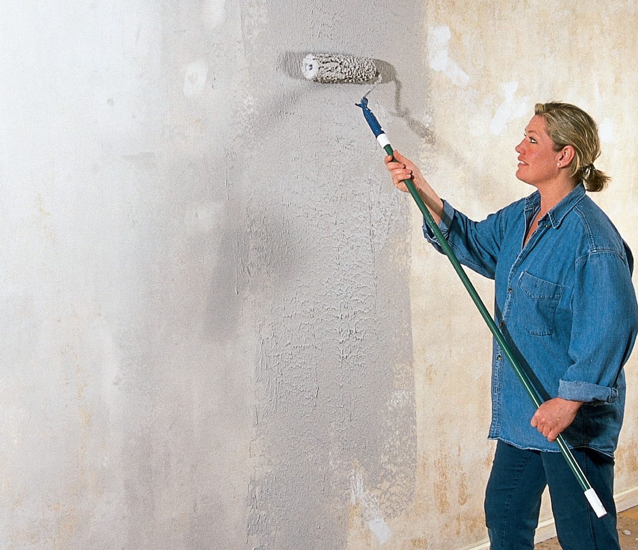 Fin struktur kan nemt glattes ud med spartelmasse, der kan rulles direkte på væggen.