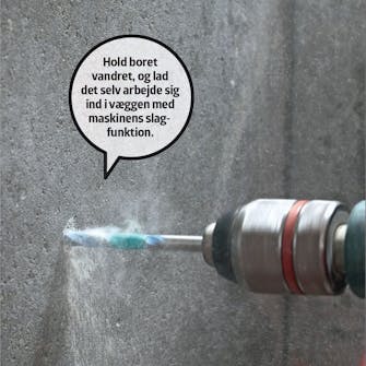 Bor med murbor. Slå slagfunktionen til. I hård beton kan du få brug for en borehammer. Hold maskinen vandret.