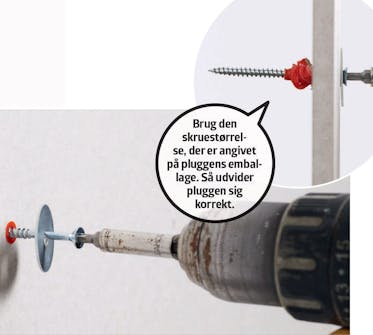 Herunder kan du læse, hvordan du afgør, om væggen er af mursten, beton, porebeton eller gips. Læs også hvilket bor og hvilken plug du skal bruge i de forskellige materialer.
