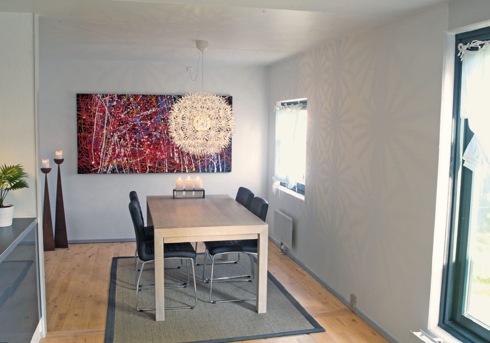 Vi har valgt at fjerne det gamle tapet hen til vinduerne på begge sider og erstatte med nyt tapet magen til. Det giver den kortest mulige samling mellem det nye og gamle tapet.