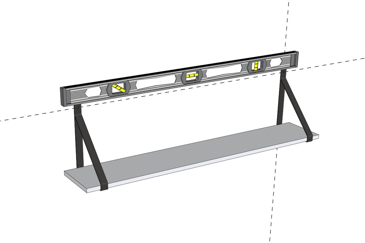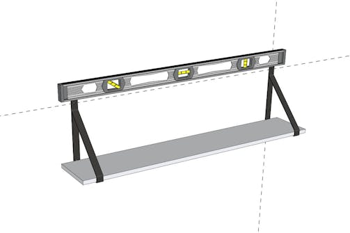 Du kan købe et laservaterpas for 3-400 kroner; det er en god investering – også hvis du vil have flere hylder, malerier eller andet til at sidde i samme højde på flere vægge.