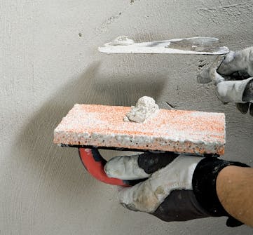 Hurtighed er et nøgleord, når du arbejder med gipspuds. Når pudsen er rørt op, har du cirka en halv time til at få pudsen på væggen og rette af.