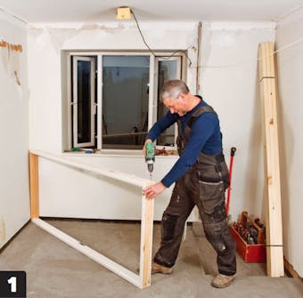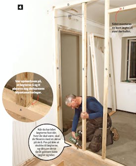 Start med at samle dørkarmen. Så kan du nemlig sætte målene af til døren, når du bygger træskelettet.