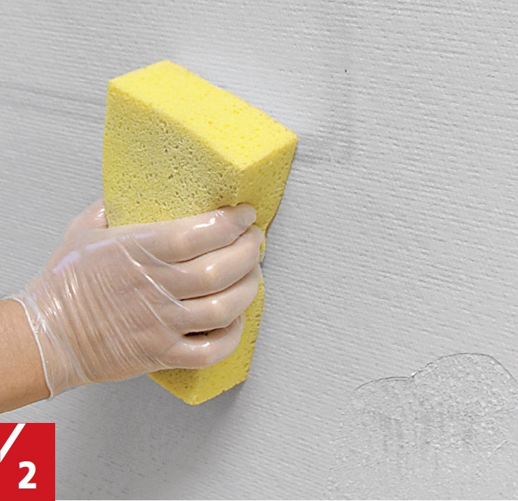 Tryk Problemløseren fast på væggen med en bred gummirulle, så den sidder godt fast i vævlimen og luftblærer fjernes. Du kan med fordel rulle tapetbanerne over igen, når de har siddet 5-10 min.