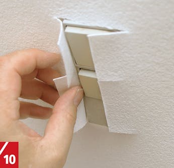 Brug en bred pensel, når du skal smøre lim på langs loft og gulv. Det gælder også rundt om kontakter.