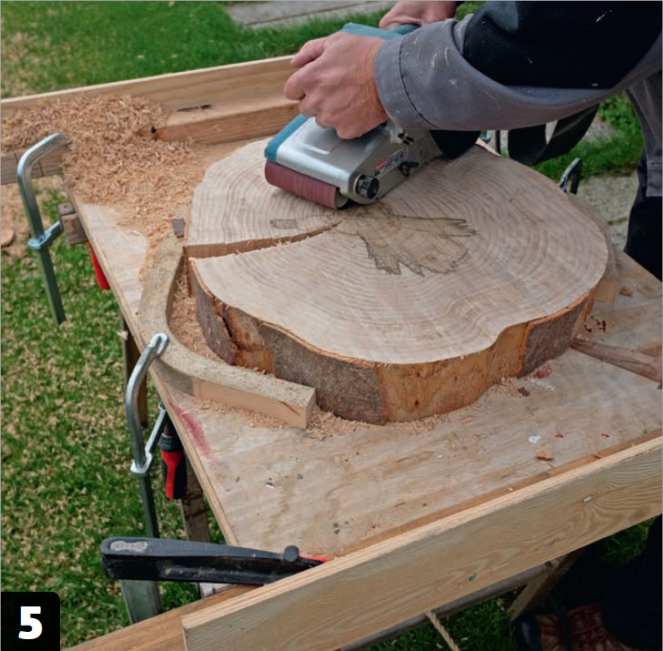 Spænd træstykket fast til en stabil bordplade med lidt ekstra plads i siderne. I hver side af bordpladen skrues to stykker 45 x 45 mm reglar fast med to lige brædder udenpå som land til føringsskinnen.
