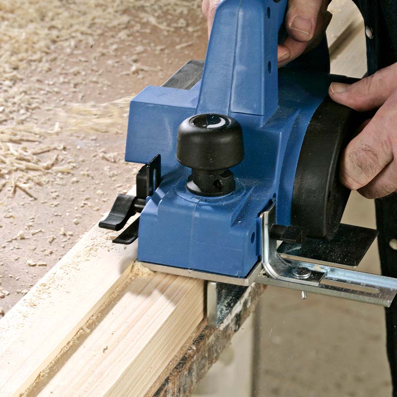 Hvis kniven på din elhøvl rækker helt ud til kanten af høvlen, så kan den fræse en fals. Det eneste, du skal bruge ud over høvlen, er et parallelanslag, der sammen med høvlens dybdestop kan bruges til at indstille, hvor bred og hvor dyb en fals du ønsker. Og så er det faktisk bare et spørgsmål om at høvle.