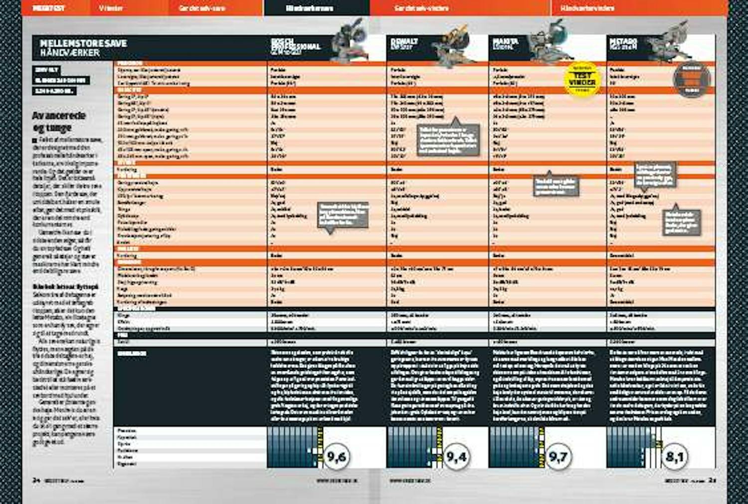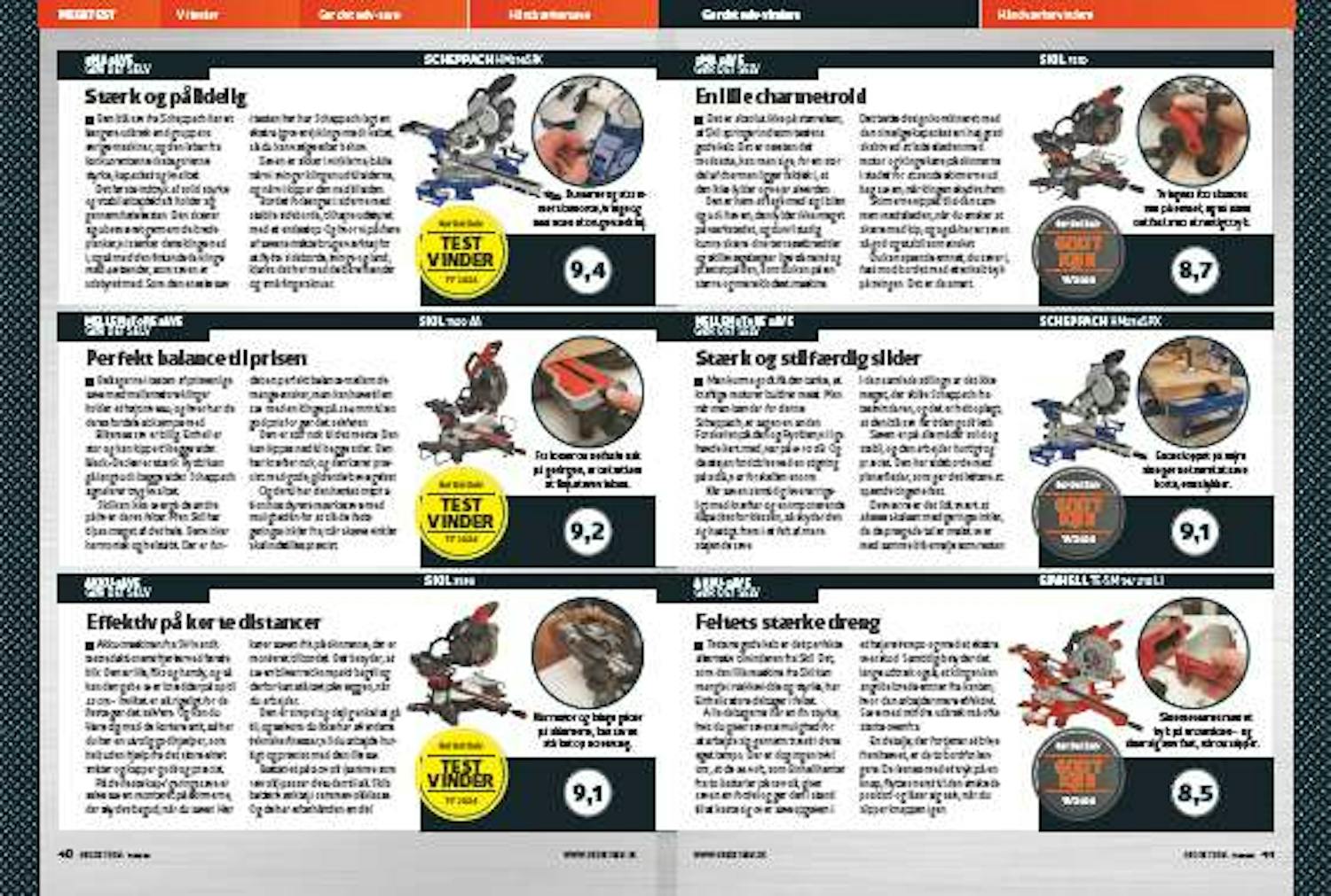 Skal du skære ultrapræcist i skrå vinkler, kan vi anbefale både Scheppach og Skil. Det er de samme to save, der kæmpede om titlerne som henholdsvis testvinder og godt køb – og der skulle målfoto til, før vi kunne udnævne en testvinder blandt de to.
