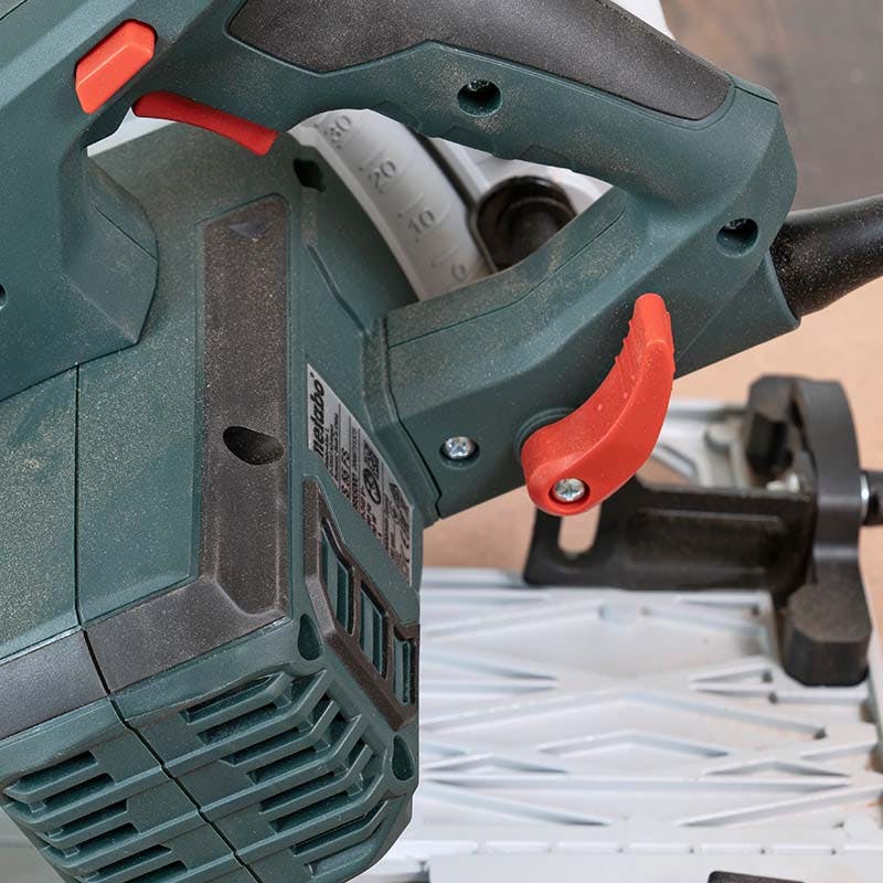 Saven er nem og intuitiv at betjene. Håndtagene er store og solide og ligger godt i hænderne. Alle knapperne og betjeningsgreb er farvet røde, så de er nemme at finde i farten. Skalaerne til indstilling af vinkling og savdybde er desuden tydelige og nemme at justere efter.