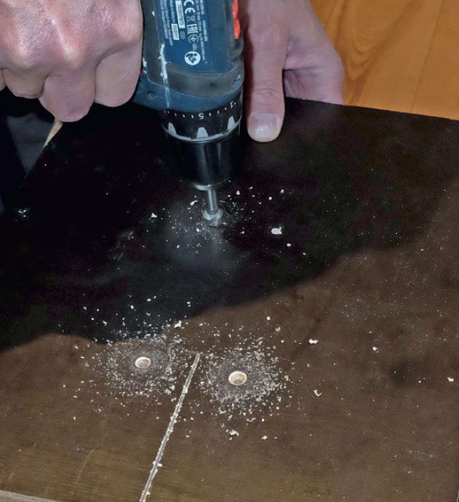 Undersænk hullerne med et forsænkerbor (undersænkerbor), så skruehovederne ikke stikker op over pladen.