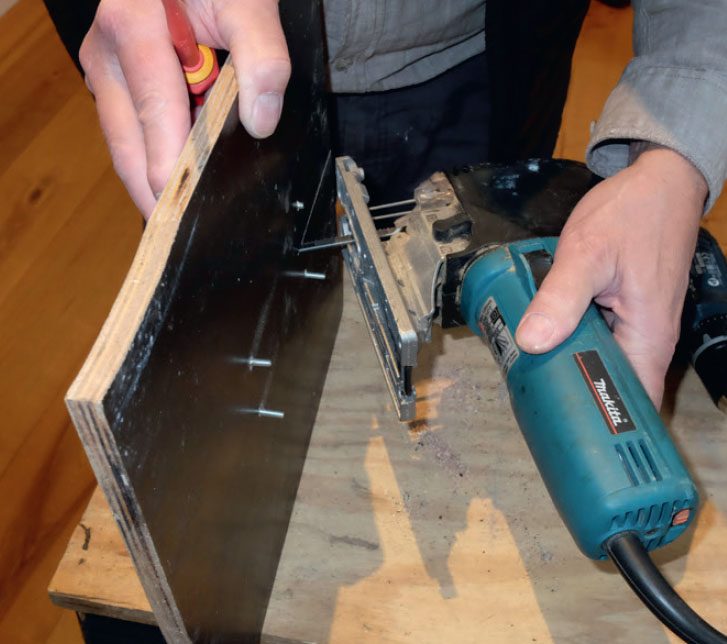 Skift de fire maskinskruer ud, som sidder på de fleste stiksave. De skal erstattes af 30 mm lange skruer.