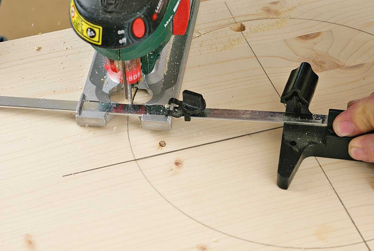 Skal du save i cirkler, eller save lange lige snit, arbejder en stiksav mere præcist, hvis den får noget at støtte sig til – fx et cirkelanslag eller en føringsskinne.