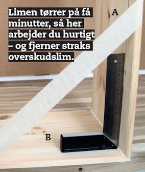 TIPS: Prøv i træ, du ikke bruger, så du ved, at vinklen er 90 grader, når to emner limes sammen.