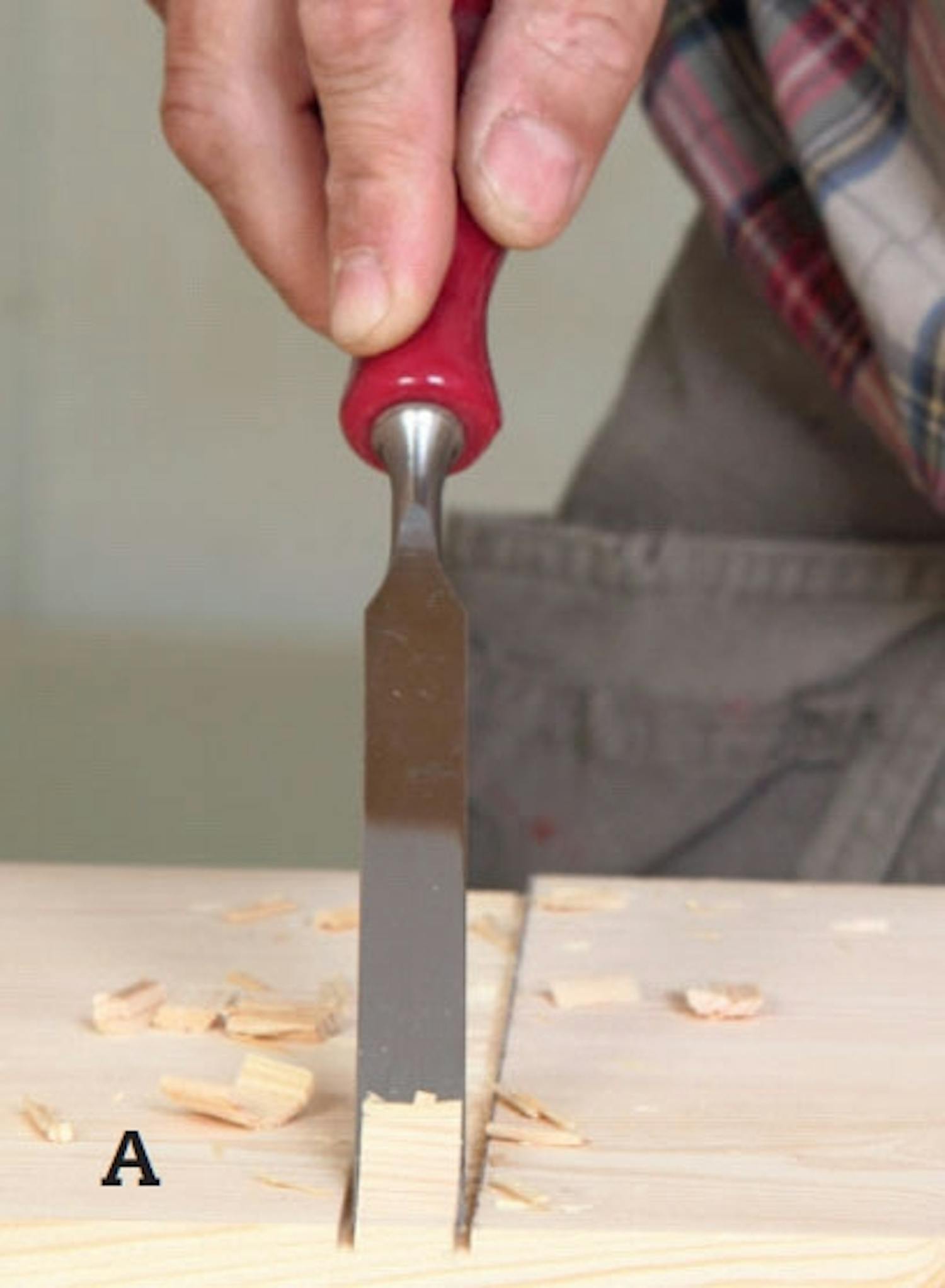 Sav et spor i listen fra forsiden ind til hvert hul. Sporet skal være 2-3 millimeter bredere, end stemmejernet er på den smalle led. Når jernet sættes ind på plads og drejes en halv omgang, sidder det.