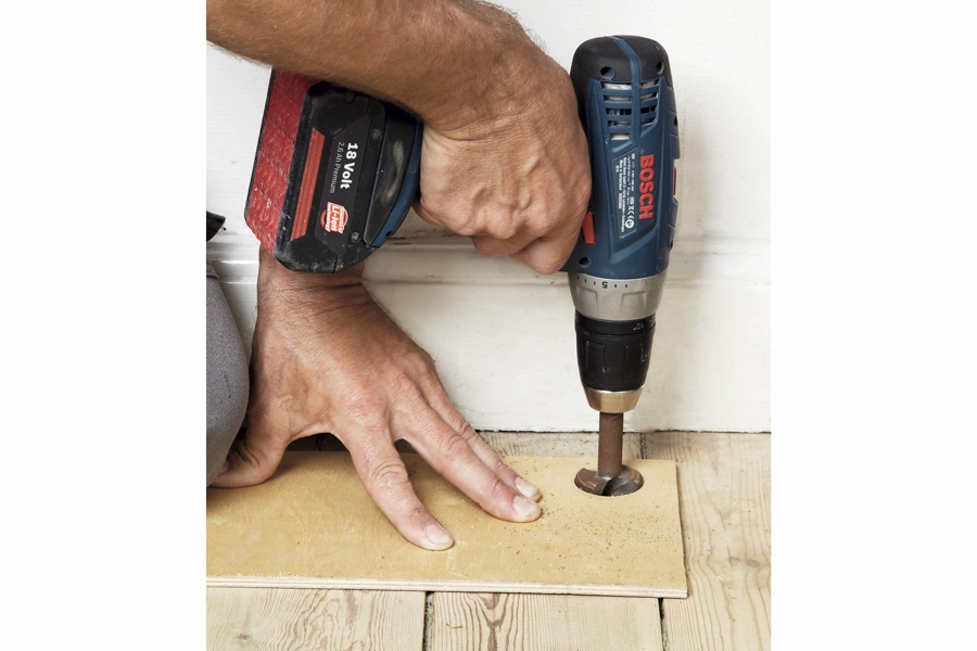 Først bores det flade hul med forstnerbor, i det hul fastgøres skruen, inden træproppen sættes på plads. En omstændig proces, men resultatet er det hele værd, og forstnerboret er uundværligt.