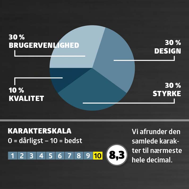 Vi vurderer, hvor nemt det er at kontrollere styrken, vælge de rette indstillinger og det rette tilbehør samt at anvende maskinerne.