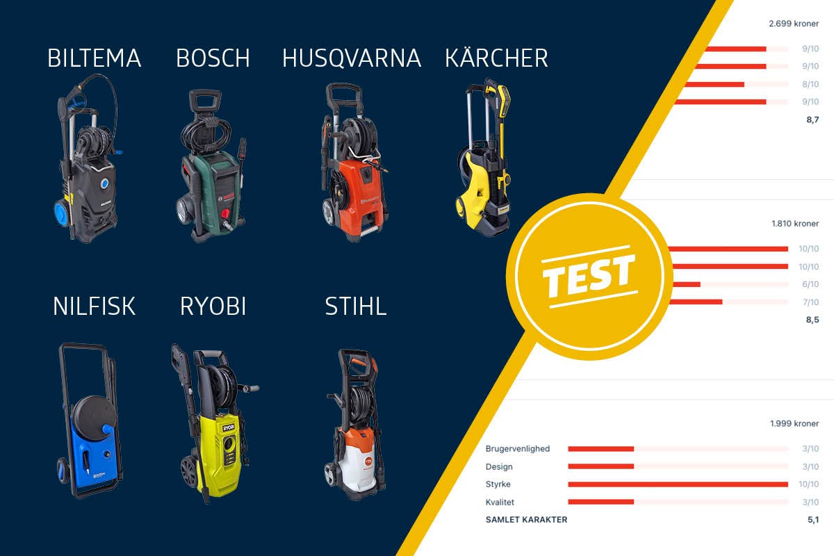 Højtryksrenserne bliver testet og får karakterer i disse fire kategorier; brugervenlighed, design, styrke og kvalitet.