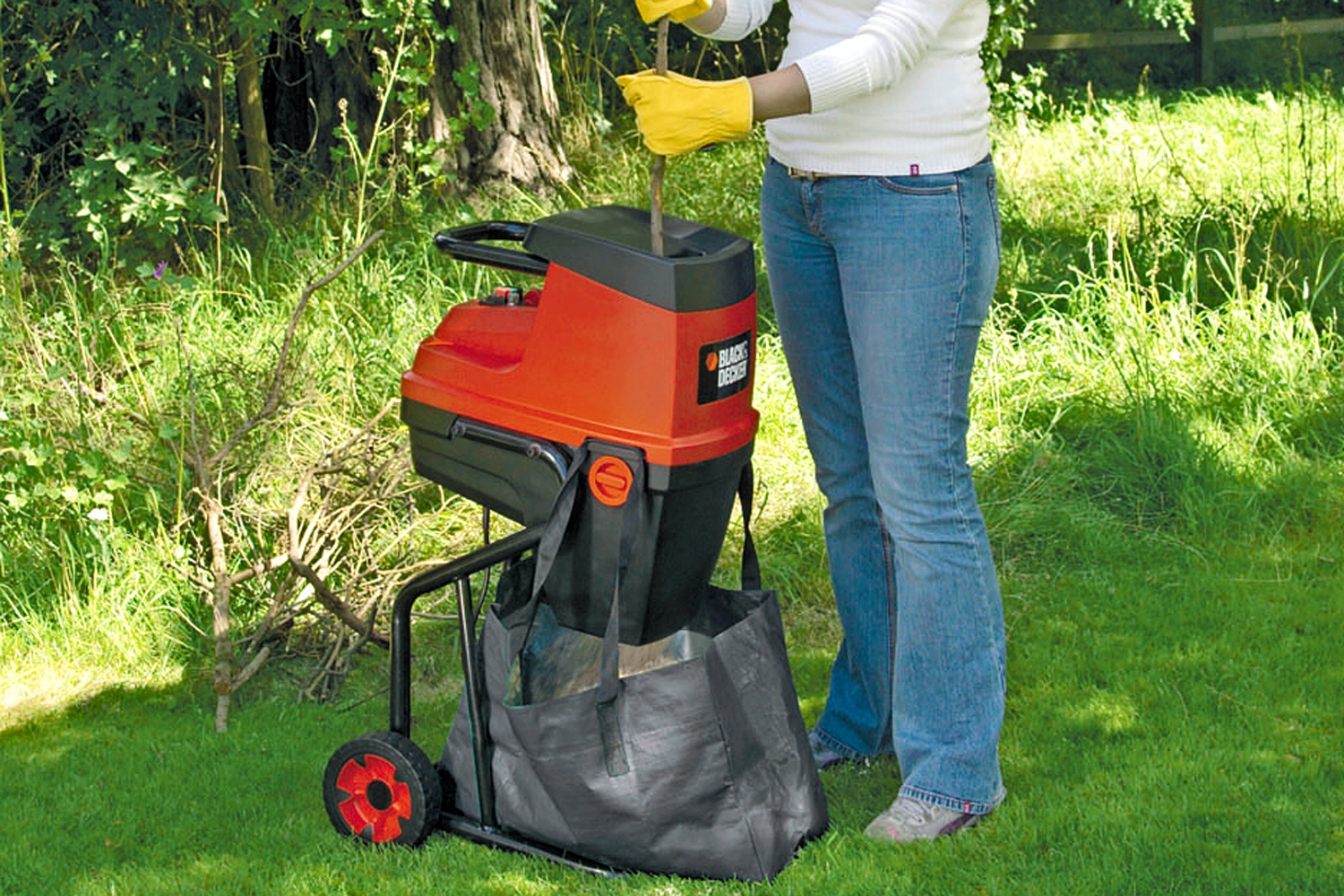 INDFØRING. En bred åbning gør det nemt at få grene, kviste og andet haveaffald ned til kværnen.