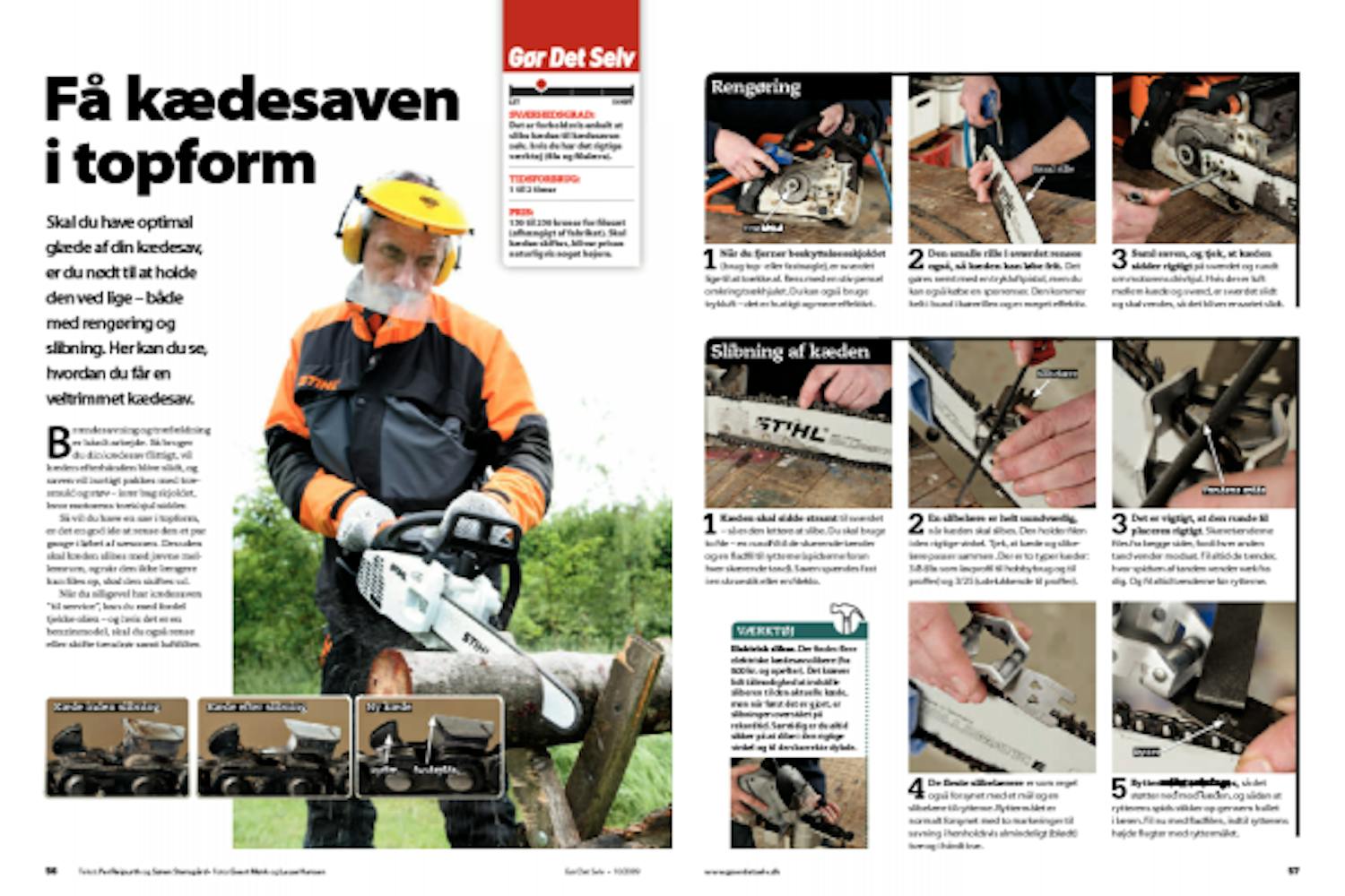 Det er forholdsvis enkelt at slibe kæden til kædesaven selv, hvis du har det rigtige værktøj (file og filelære).