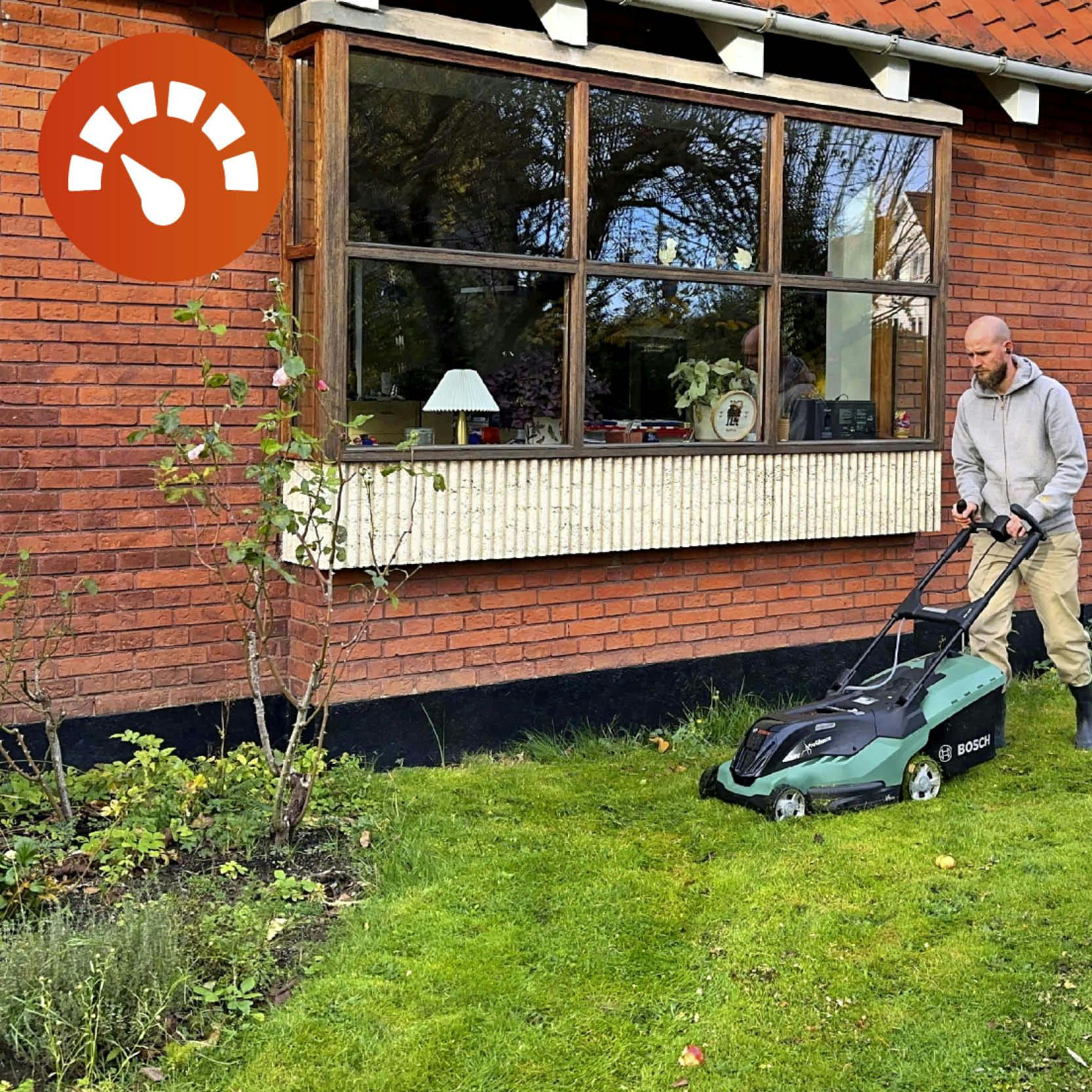 Vi måler, hvor mange m² deltagerne kan klippe i en almindelig villahave. Følger der to sæt batterier med, tæller begge med.