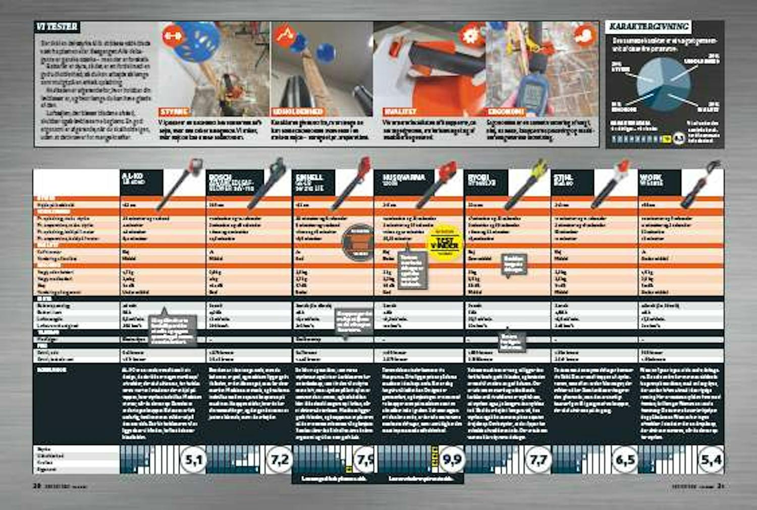 Styrken er testens mest imponerende. På fuld styrke får du knap et kvarter på et fuldt opladet batteri, mens du på den laveste styrke kan arbejde i hele 101 minutter, inden du skal finde opladeren frem.