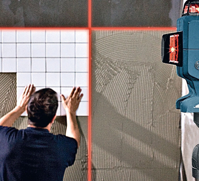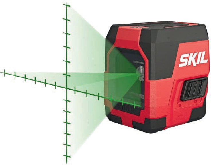 Laseren afsætter to linjer i en vinkel på 90 grader. Det er en stor hjælp, når der skal sættes fliser op, eller når der skal hænges billeder op.