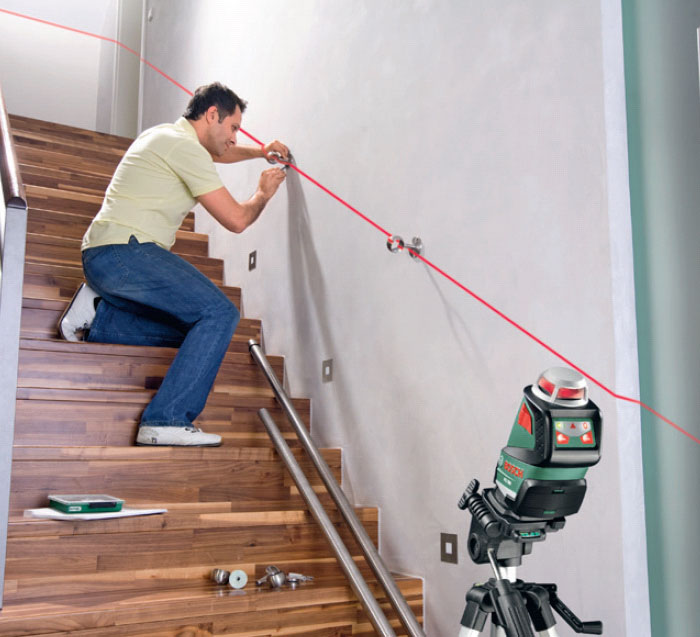 Denne type lasermåler kan afsætte fra en til tre linjer hele vejen rundt - på samme tid. Det er især nyttigt, når man skal hænge lamper op eller lægge nyt gulv.