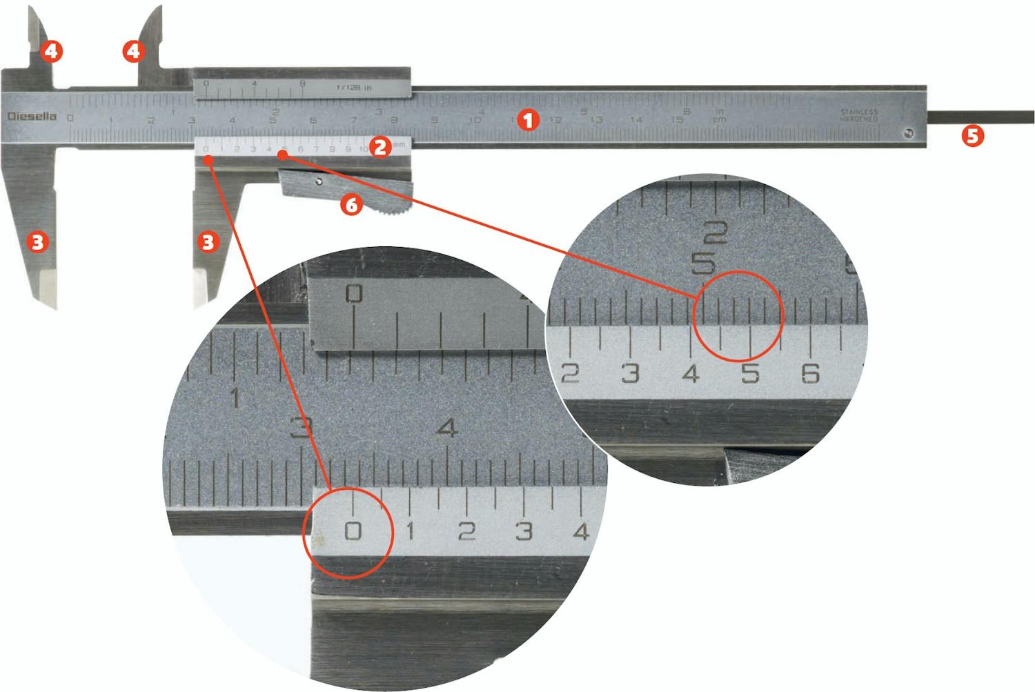 Særligt på runde emner som skruer, møtrikker, rør og lignende er skyde læren en stor hjælp.