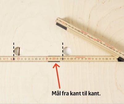 Det kan være svært at måle fra centrum til centrum mellem to huller. Mål i stedet fra kant til kant. Afstanden er den samme.